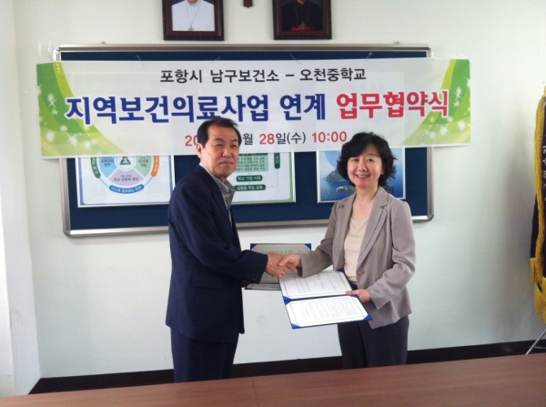 포항시 남구보건소는 28일 오천중학교(교장 임종화)와 함께 청소년 건강증진을 위한 업무협약을 체결했다.