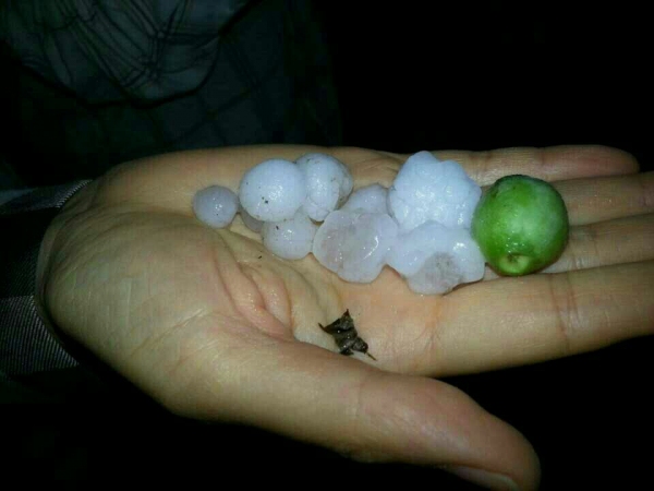 ▲ 28일 오후 3시 40분께 경북 안동시 길안면 일대에 돌풍을 동반한 500원짜리 동전 크기의 우박이 40분 동안 퍼부어 적과를 끝낸 과수, 고추 등 600ha 가 피해를 입었다. (사진제공 동안동농협 보험조사팀) |
