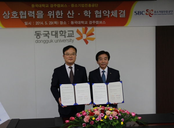 ▲(왼쪽부터 박철규 중소기업진흥공단 이사장, 이계영 동국대학교 경주캠퍼스 총장) |