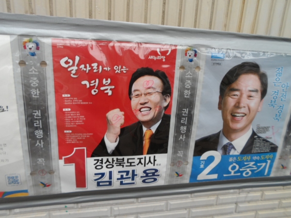 포항지역에 자신이 지지하는 후보가 아니라는 이유로 다른 후보들의 선거벽보에 낙서를 해 훼손을 한 피의자가 처음으로 검거됐다.