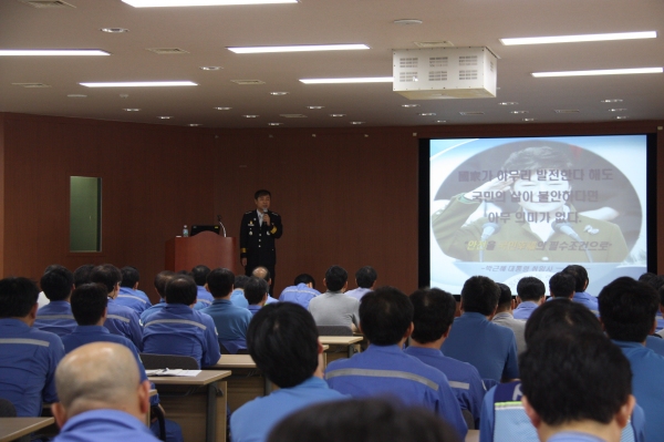 이 날 교육은 류수열 포항남부소방서장이 풍부한 현장실무와 소방안전교육 강의 경험을 살려 화재예방활동의 중요성과 공장화재 및 대형화재의 사례를 통한 예방대책 등을 중점적으로 강의했다.