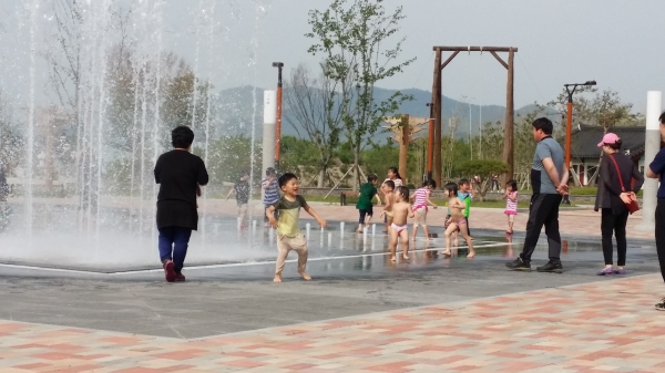 맹위를 떨치는 이른 더위 식혀줄 남매공원 음악분수, 바닥분수로 볼거리 제공