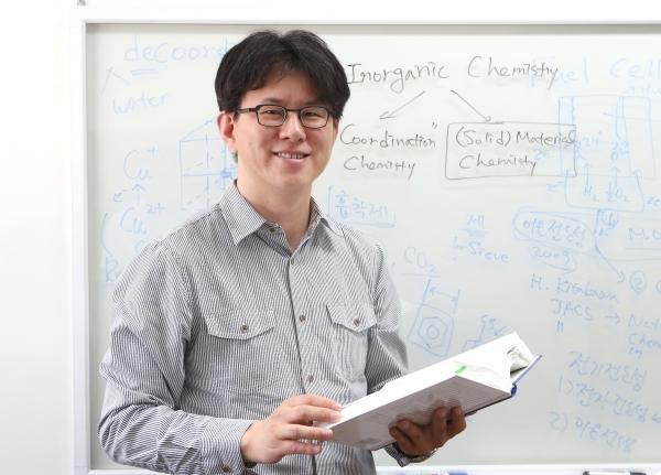 정낙천 교수<사진> 연구팀이 주도하고 미국 노스웨스턴대학 스토다트(F. Stodart) 교수 연구팀과 공동으로 수행한 이번 연구에서 연구팀은 이산화탄소 분자를 화학적으로 자유롭게 흡․탈착시킬 수 있는 나노다공성 유기금속구조체(MOF, Metal-Organic Framework)를 개발했다.