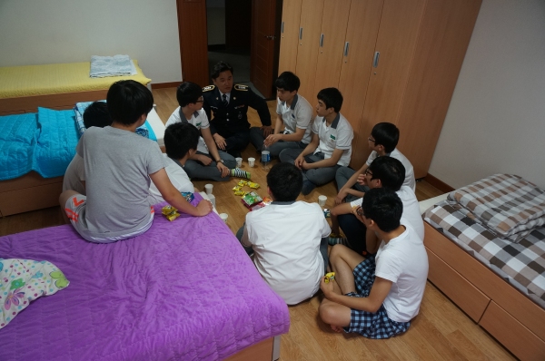 또한 “맘-폴리스”(학부모 순찰대) 및 교사, 아동청소년계장, 학교전담경찰관 등 기숙사 주변 순찰과, 문명고등학교 전담경찰관인 이용욱 경사는 학생들과 식사를 같이하고 생활실 내부도 점검하는 등 일일 사감선생님 체험도 했다.