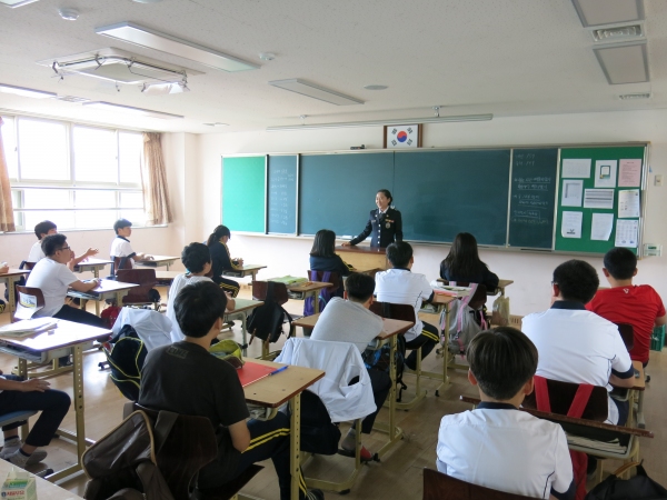 영덕경찰서(서장 김항곤)는 지난 2일 오후 2시경 여성청소년계 학교전담경찰관 송미선 순경이 영덕군 영해중학교를 방문하여 경찰공무원을 꿈꾸는 1학년 학생 20명을 대상으로 진로교육 특강을 가졌다.