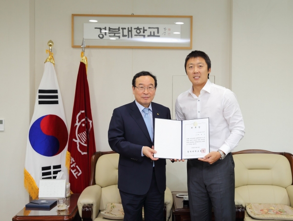 경북대학교(총장 함인석)는 지난달 30일 삼성라이온즈 배영수 선수를 명예홍보대사로 위촉했다. 이날 배영수 선수는 “어린 시절 경북대학교를 내 집처럼 드나들곤 했다. 내가 경북대학교의 1호 명예홍보대사로 선정됐다고 들었다. 이제 경북대학교를 대표하는 사람 중 한 사람이라는 생각으로 더욱 열심히 하는 모습을 보여드리겠다”고 말했다.