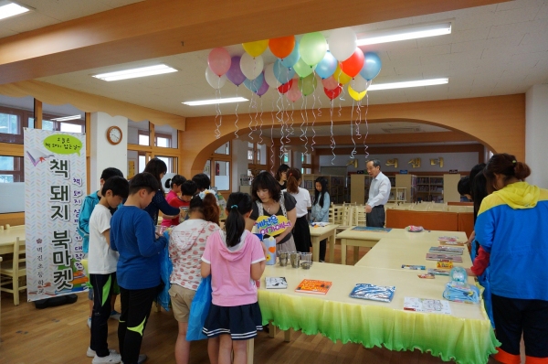 성주군 벽진면소재 벽진 초등학교는 4월부터 학생들의 건강한 독서습관 정착과 독서에 대한 흥미를 키우고자 책 먹는 돼지 살찌우기 대작전 독서 프로그램을 운영해 책 돼지 키우기를 전교생을 대상으로 실시하고 있다. 2개월 동안 독서태도, 독서록 기록 e-독서친구 참여 등으로 모은 독서코인으로 살찌운 책 돼지 저금통을 잡는 시간을 가졌으며, 이 독서코인으로 독서용품과 학용품 등을 살 수 있는 제1차 북 마켓이 도서관에서 열렸다. 이날 북 마켓에 함께 참여한 이상현 교장은 “작은 행사로 학생들의 학교생활에 흥미를 가질 수 있도록 하면서 독서의지를 자극할 수 있는 좋은 기회가 되었다. 이러한 독서의 외적 자극이 내적 자극으로 이어질 거라 기대한다.”고 말했다.