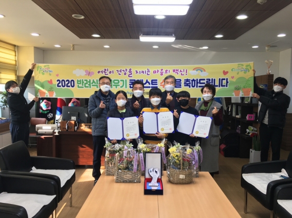 한편, 반려식물키우기 운동은 실내 공기질 개선과 정서 안정을 위해 2019년부터 추진 중인 참여 프로그램으로 2019년 4개교 700명, 2020년 8개교 1350명 등 초등학생 2050명이 참여하고 있다. 이번 시상식은 코로나19 확산을 방지하기 위해 학교별 개별 시상으로 진행됐다.