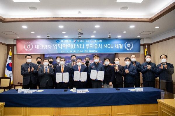 이날 MOU에는 이희진 영덕군수를 비롯해 하대성 경상북도 경제부지사, 김청현 ㈜디오 회장이 참석했다.