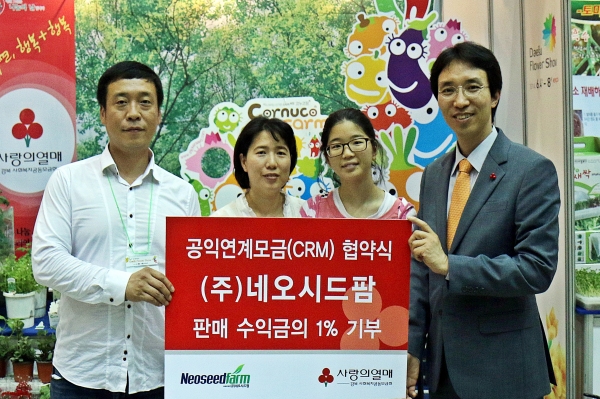 농업회사법인 ㈜네오시드팜(대표이사 우동하)과 경북사회복지공동모금회(회장 이대공)는 지난 6월 5일, 대구 엑스코에서 열린 ‘제5회 대구 꽃 박람회’ 행사장에서 CRM(공익연계마케팅;Cause-Related Marketing) 협약을 체결했다.