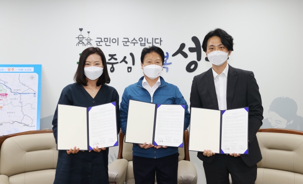성주군은 최근 군수실에서 지역 식품가공업체인 ㈜참사랑(대표 정정애)과 ㈜더본코리아(대표 백종원)와의 ‘성주참외 음료사업 추진에 대한 업무 협약식’을 개최했다.