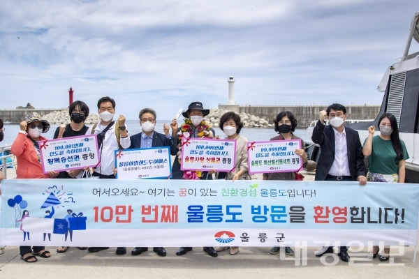 코로나19로 침체된 여행 분위기 속에서 울릉도를 방문한 10만 번째 행운의 주인공이 탄생했다.