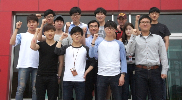▲이번 정밀측정산업기사 국가자격시험에 합격한 영진전문대생들이 파이팅을 외치고 있다. |
