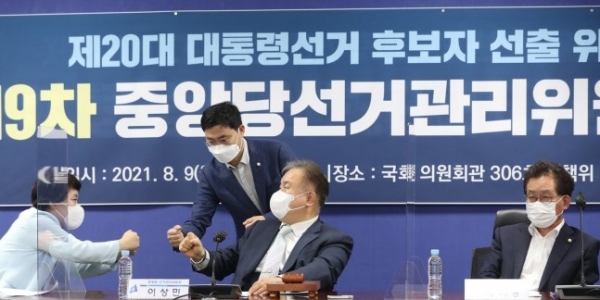 이어 "후보 6명 중 4명은 현장 투표를 원했고 2명은 선관위 결정에 따른다는 유보적 입장이었다"며 "정세균 후보가 최근 입장을 변화했고 3 후보는 현장 투표를 고수했지만 오늘 선관위에 이르기까지 많은 소통을 해서 위원장에게 투표 방법을 위임한다는 뜻을 표시했다"고 부연했다. 이 위원장은 "후보 측과 이견 없이 잘 될 것 같다"고 밝혔다.