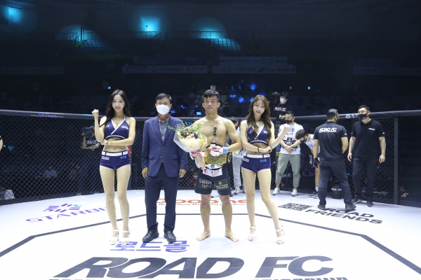 박해진 선수는 지난 4일 원주 종합체육관에서 열린 로드FC 59 대회 페더급 타이틀전에서 김수철 선수를 1라운드 4분 50초 만에 길로틴 초크로 꺾으며, 로드FC 3대 페더급 챔피언 타이틀을 따냈다.