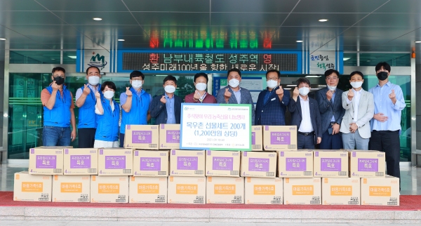 우리농업지키기 경북운동본부(본부장 김종필)는 지난 10일 추석 명절 어려운 가정에 전달해 달라며 목우촌 선물세트 200개(1200만원 상당)를 성주군청 공무원직장협의회에 전달했다. 장상휘 기자 js1013h@naver.com 다른기사 보기 저작권자 © 대경일보 무단전재 및 재배포 금지 당신만 안 본 뉴스 李대통령 “성과는 충분”… 재계 “국내 투자 확대하겠다” 신천지자원봉사단 대구지부, 대명역·관문시장 환경정화활동 실시 [부서탐방] 지역발전 대동맥...사통 팔달 교통망 확충 앞장 ‘구미시 도로 철도과’ 튀르키예서 독일인 일가족 숨져… 길거리 음식인가, 호텔 오염인가 [단독] 수능 끝났는데도 1시간가량 ‘대기’… 포항 두호고 수험생들 불만 ‘AI 버블’ 경계·美 금리 불확실성… 코스피 4000선 무너졌다 유재춘 이사장, 국회에 새마을금고 규제 완화 건의 李대통령 “성과는 충분”… 재계 “국내 투자 확대하겠다” 댓글삭제 삭제한 댓글은 다시 복구할 수 없습니다. 그래도 삭제하시겠습니까? 비밀번호 닫기 기사 댓글 0 댓글 접기 로그인 후 이용 가능합니다. 댓글 내용입력 비회원 로그인 이름 비밀번호 댓글 내용입력 댓글쓰기 계정을 선택하시면 로그인·계정인증을 통해 댓글을 남기실 수 있습니다. 회원 로그인 비회원 글쓰기 이름 비밀번호 자동등록방지 로그인 옵션 창닫기 주요기사 [이철우 칼럼] 행복을 유예하지 마라 [역사탐방] 일본서 꽃 피운 조선의 음식문화 해병특검, 공수처장·차장 기소··· 국회 위증 사건 방치 혐의 [속보] '6000만원 수수 혐의' 노웅래 전 의원 1심 무죄 與, 대미투자특별법 발의··· 美 관세 11월1일 소급 적용 與, 퇴직 대법관 수임 제한·법원행정처 폐지 추진… 법원 “사법권 침해” 반발