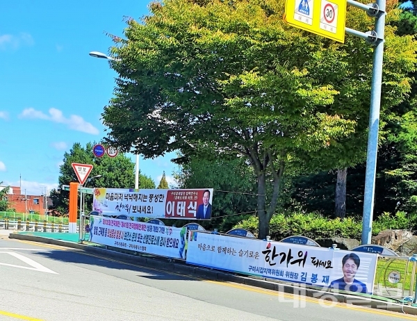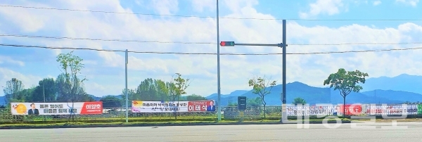 지역 곳곳에 게시된 수백 개 현수막은 허가받은 지정 게시대가 아닌 가로수와 전봇대 등 차량 통행과 사람 왕래가 잦은 주요 상권 등 곳곳에 게시됐다.