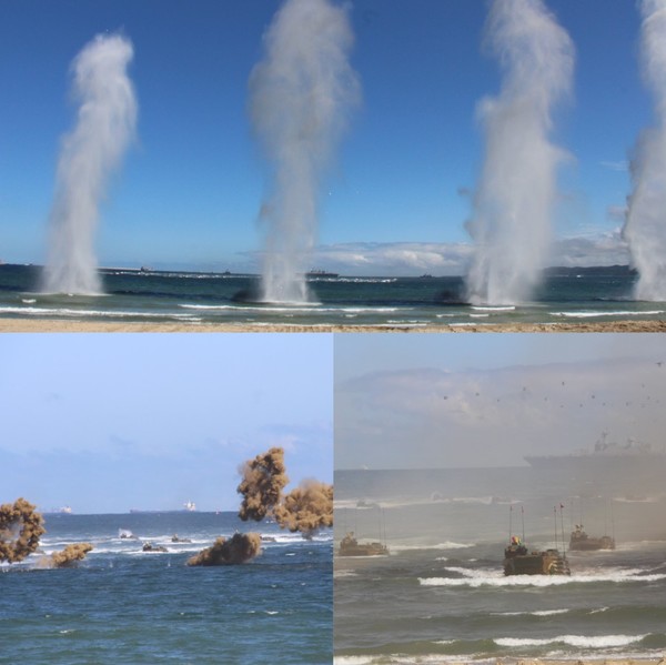 이어 IBS 고무보트 2대가 해상 장애물을 수중 폭파시켰다. 장애물 제거 후 마라도함 뒤에서 KAAV 상륙 돌격 장갑차 48대와 IBS 고무보트 48대, 솔개 공기부양정 1대가 해안가로 출발했다. 함정 위로는 아파치 공격헬기 12대가 장갑차와 고무보트를 엄호했다.