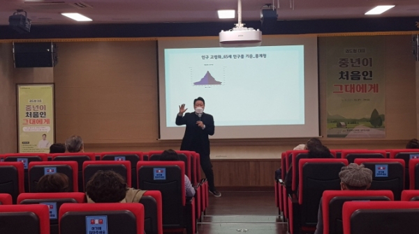 이번 특강은 권도형 한국은퇴설계연구소 대표를 초청해 ‘중년이 처음인 그대에게’라는 주제로 품격 있는 신중년이 되기 위해 잘 버는 능력, 잘 모으는 능력, 잘 지키는 능력, 잘 쓰는 능력을 소개해 참여자들의 인생설계에 도움을 주는 뜻깊은 시간을 가졌다.