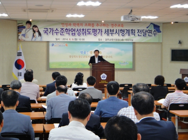 경주교육지원청은 9일 오전부터 경주교육지원청 대회의실에서 경주지역 중·고등학교 교감 및 NEIS전달강사 등 60여명이 참석한 가운데 국가수준학업성취도평가 세부시행계획 전달 연수회를 개최했다.