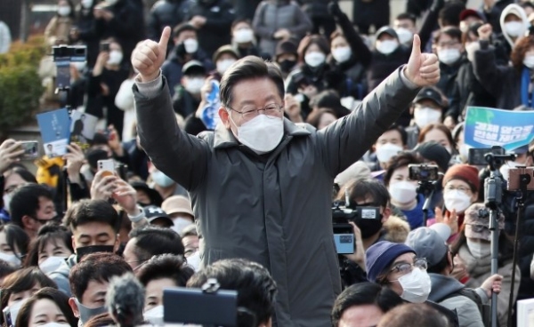 윤 후보가 추경 회동 제안에 '실효성이 없다'고 거부한 것에 대해 이 후보는 "이중플레이, 구태정치에서 좀 벗어나길 기대한다"고 지적했다.