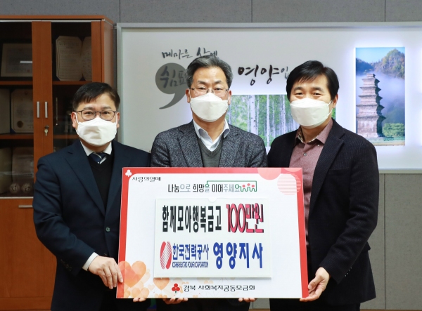 한국전력공사 영양지사(지사장 김상훈)와 전력노조 영양지회(지회장 김종운)는 지난 4일, 영양군지역사회보장협의체를 찾아 관내 소외계층에 대한 이웃사랑 실천을 위해 성금 1백만 원을 전달하며 2022년‘함께모아 행복금고사업’새해 첫 스타트를 끊었다.