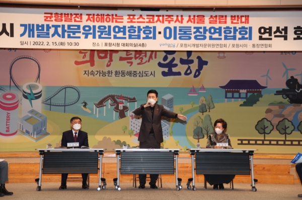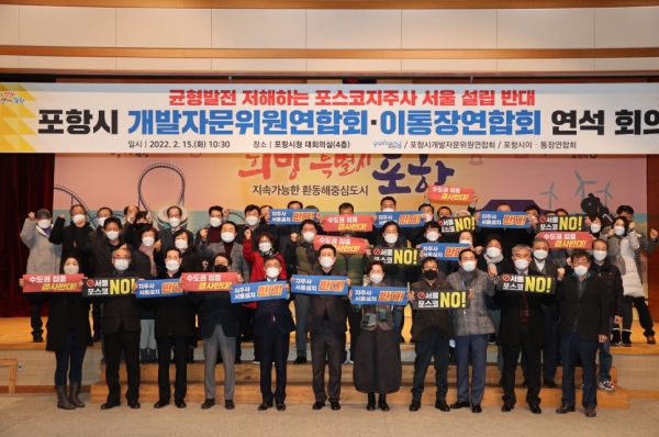 포항시개발자문위원연합회와 포항시이통장연합회는 15일 포항시청 대회의실에서 읍면동 29개 개발자문위원장, 이·통장 회장 58명이 참석한 가운데 긴급 연석회의를 개최했다.