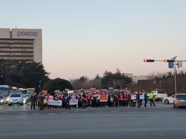 이들은 지역 균형 발전에 역행하는 포스코를 규탄하며, 기업 시민 정신에 걸맞은 지역 상생 대책을 촉구했다.
