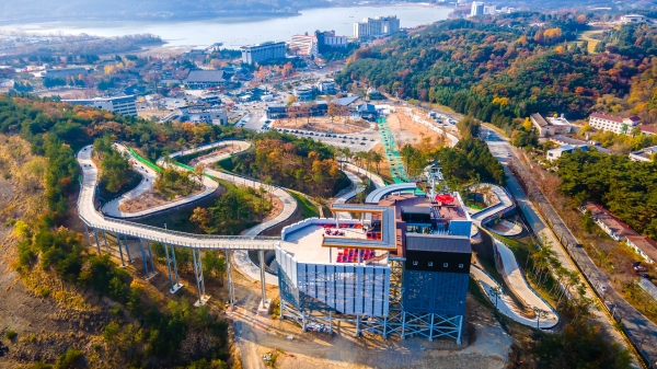 경주루지월드는 화랑코스 1.6km, 천마코스 1.4km 등 총 2개 코스로 총 길이는 3km다. 국내 유수의 루지보다 길고 경사가 있어 속도를 내며 라이딩하기에 안성마춤이다. 보문관광단지의 전경을 한 눈에 볼 수 있는 전망대까지 오르는 ‘리프트’는 또 다른 설레임을 전한다.