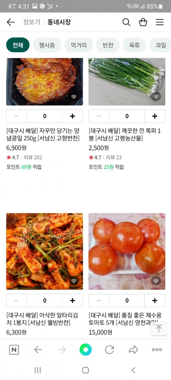 | ▲ 네이버 장보기창에 올라온 서남신시장 물품들 | ||