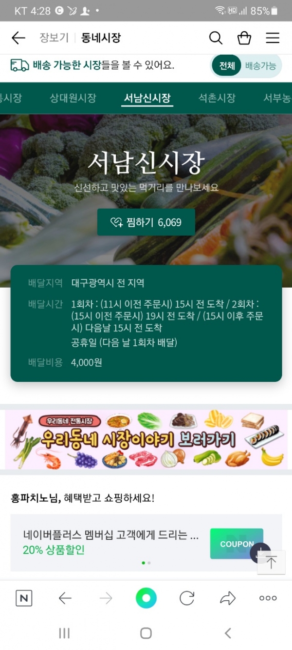 온라인 구매하는 방법은 네이버 창에 서남신시장을 입력하면 바로 장보기 사이트가 연결된다.