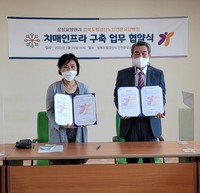 ▲ 삼성요양원 박미경 대표(왼쪽)와 경북도립경산노인전문요양병원 정다출 병원장(오른쪽)이 협약서를 들고 기념촬영을 하고 있다.의료법인 성심의료재단 경북도립경산노인전문요양병원은 지난 24일 지역사회 치매인프라 구축과 기관 간 상호협력을 도모하기 위해 삼성요양원과 업무협약을 체결했다.