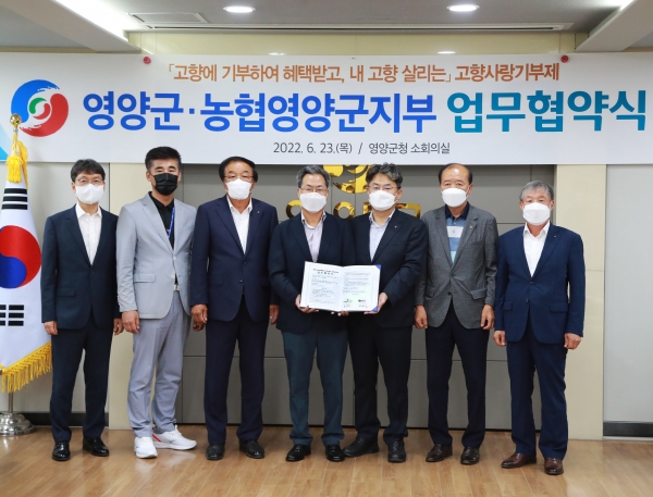 영양군과 농협영양군지부는 23일 영양군청 소회의실에서 고향에 기부해 혜택 받고, 내 고향 살리는 고향사랑기부제 업무 협약을 체결했다.