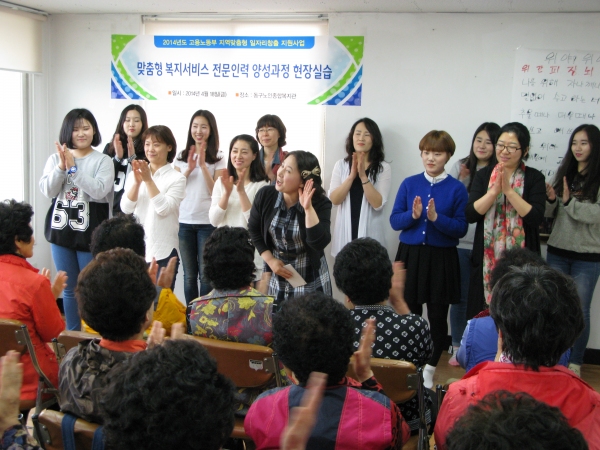 ▲맞춤형 복지서비스 전문인력 양성 무료 교육 1차 과정 참가 교육생들이 수료식을 앞둔 4월, 동구노인종합복지관을 찾아 현장실습을 하는 모습. |