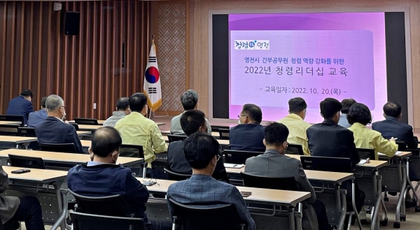 이번 교육은 최기문 시장을 필두로 본청 및 사업소의 5급 이상 공직자들을 대상으로 진행됐으며, 조직혁신의 리더로서 반드시 갖춰야 할 윤리의식 함양과 청렴문화를 이끌어갈 견인차로서 확고한 청렴 마인드 확립을 취지로 기획됐다.