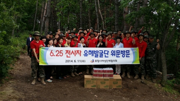 포항시 여성단체협의회(회장 박춘순)는 11일 영덕군 강구면 일대에서 6.25 전사자 유해발굴에 앞장서고 있는 해병1사단 7연대 장병들을 위문 방문했다.