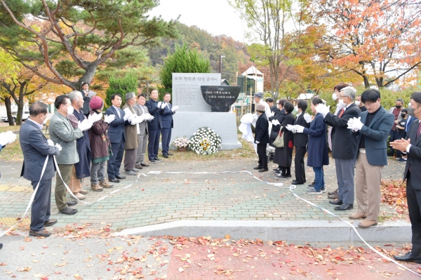문경시 문경읍 주민자치회 주관으로 지난달 30일 도천 천한봉선생 공덕비 제막식을 지역의 단체장, 도예인 등 80여 명이 참석한 가운데 문경온천 앞 공원에서 가졌다. 신봉경 sbk3527@naver.com 다른기사 보기 저작권자 © 대경일보 무단전재 및 재배포 금지 당신만 안 본 뉴스 李대통령 “성과는 충분”… 재계 “국내 투자 확대하겠다” 신천지자원봉사단 대구지부, 대명역·관문시장 환경정화활동 실시 [부서탐방] 지역발전 대동맥...사통 팔달 교통망 확충 앞장 ‘구미시 도로 철도과’ 튀르키예서 독일인 일가족 숨져… 길거리 음식인가, 호텔 오염인가 [단독] 수능 끝났는데도 1시간가량 ‘대기’… 포항 두호고 수험생들 불만 ‘AI 버블’ 경계·美 금리 불확실성… 코스피 4000선 무너졌다 유재춘 이사장, 국회에 새마을금고 규제 완화 건의 李대통령 “성과는 충분”… 재계 “국내 투자 확대하겠다” 댓글삭제 삭제한 댓글은 다시 복구할 수 없습니다. 그래도 삭제하시겠습니까? 비밀번호 닫기 기사 댓글 0 댓글 접기 로그인 후 이용 가능합니다. 댓글 내용입력 비회원 로그인 이름 비밀번호 댓글 내용입력 댓글쓰기 계정을 선택하시면 로그인·계정인증을 통해 댓글을 남기실 수 있습니다. 회원 로그인 비회원 글쓰기 이름 비밀번호 자동등록방지 로그인 옵션 창닫기 주요기사 [이철우 칼럼] 행복을 유예하지 마라 [역사탐방] 일본서 꽃 피운 조선의 음식문화 해병특검, 공수처장·차장 기소··· 국회 위증 사건 방치 혐의 [속보] '6000만원 수수 혐의' 노웅래 전 의원 1심 무죄 與, 대미투자특별법 발의··· 美 관세 11월1일 소급 적용 與, 퇴직 대법관 수임 제한·법원행정처 폐지 추진… 법원 “사법권 침해” 반발