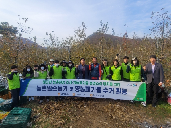 ▲ 경북농협 농협 안동시지부 농촌일손돕기 및 영농폐기물 수거 실시 경북농협(본부장 금동명)과 농협중앙회 안동시지부(지부장 배준호)는 17일 안동시 남후면 일대에서 일손이 부족한 농가를 찾아 농촌일손돕기와 폐비닐, 폐농약 용기등 영농폐기물 수거 캠페인을 실시했다.