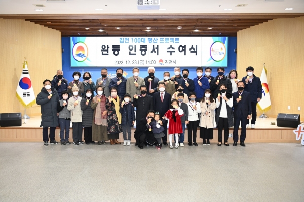 김천 100명산 프로젝트란 김천시의 아름다운 명산을 알리기 위해 힘쓰고 산지정화활동에 적극적이며 김천시에서 지정한 100명산을 완등한 도전자들에서 기념 인증서를 수여하는 행사이다.