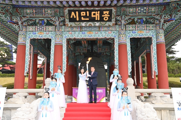체전의 하이라이트인 성화 점화는 코로나19 극복과 체육발전의 유공자들로 구성된 4개 팀 19명의 성화 주자들을 거쳐 성화대의 불꽃이 피어올랐으며, 개회식 행사 후에는 박군과 김연자의 축하공연으로 시민들의 흥을 돋웠다.