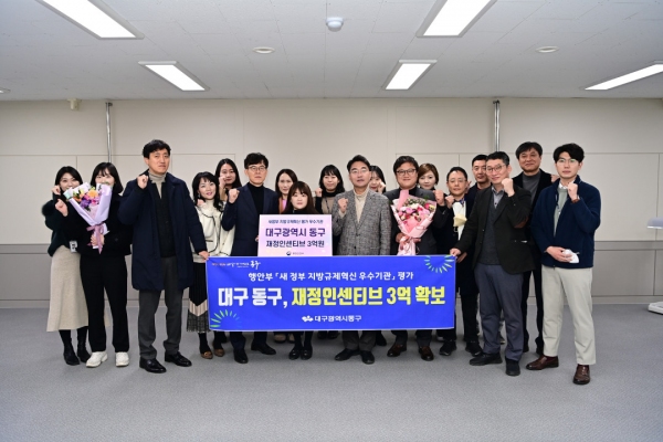 대구 동구청이 행정안전부에서 시행한 새 정부 지방규제혁신 추진성과 평가에서 우수기관으로 선정되어 재정인센티브 3억원을 확보했다.