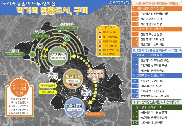 지역농가의 안정적 유통망을 확보하고 소득창출로 지속가능한 농업농촌 체계를 마련해 안전 먹거리 생산과 소비를 위한 ‘구미형 푸드플랜 기반’을 구축한다.