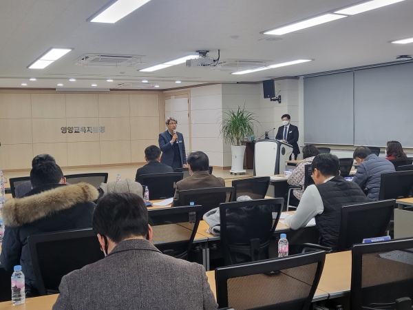 경북도영양교육지원청(교육장 이경)은 최근 영양교육지원청 대회의실에서 관내 초, 중, 고등학교 교감이 한자리에 모인 가운데‘2023학년도 신학기 준비를 위한 교감 회의’를 가졌다. 이날 회의에서는 2023학년도 영양교육지원청이 계획하여 진행하고자하는 각종 행사에 대해 안내하고 학교의 의견을 나누는 자리가 되었다. 이경 교육장은 “신학기를 준비하는 이 즈음에 관내 초·중·고등학교 교감선생님과 장학사들이 한자리에 모여 영양교육의 발전을 위해 노력하는 모습에 큰 기대가 생긴다.”고 전했다.