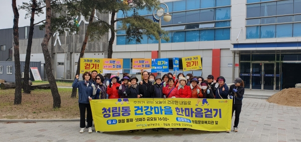 2021년 실시한 지역사회건강조사 결과 청림동 걷기실천율은 13.2%로 포항남구 걷기실천율 28.7%보다 15.5%로 낮게 측정돼 코로나19 이전에는 매월 1회 실시하던 걷기 동아리를 지난 2월부터는 매월 2회로 늘여 둘째·넷째주 금요일 오후4시 청림문화복지관에 모여 운영하고 있다.