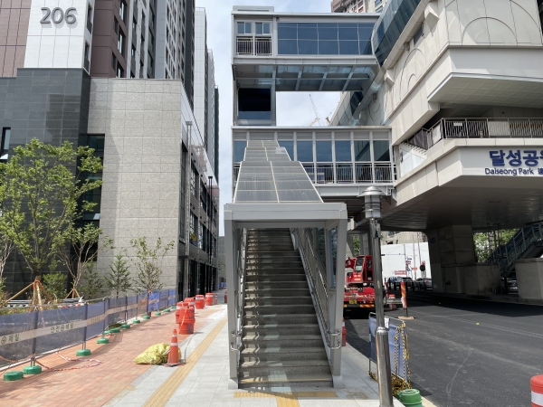 이번 공사는 달성지구 주택재개발사업으로 달성로 일부 구간 도로가 확장되면서 지난 1월부터 달성공원역 출입구 이설공사를 시행했으며 5월말 완공됐다.