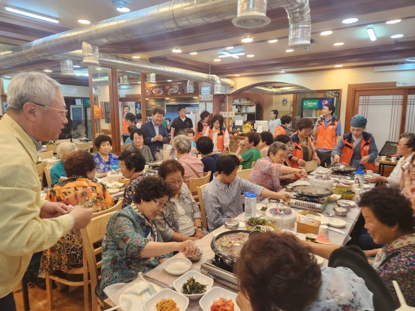 이날 행사에는 홀몸어르신 30명, 협의체 위원 20명을 포함하여 총 50여 명이 참석하였으며, 재능기부 업무 협약체결 식당인 울릉약소마을에서 개최되었다. 올해 사업을 위해 장소와 음식을 기쁜 마음으로 후원한 정 진 협의체 위원(울릉약소마을 대표)은“어르신들이 맛있게 드시고 즐기셔서 저 역시 보람을 느끼며, 작은 재능이지만 지역사회에 조금이나 보탬이 되길 바라는 마음으로 후원하고 있는데 각박한 사회에 따뜻한 온정이 확산되었으면 하는 바람”이라고 말했다.