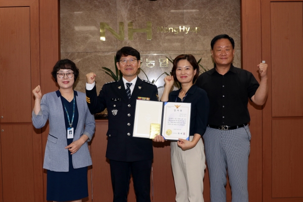 지난 16일, 국가기관을 사칭한자로부터“농협직원이 계좌의 돈을 몰래 빼 갈 것이니 전액 인출해 집에 보관하고 있으라”는 전화를 받고 은행에 방문했고 고액인출 거부 시 ‘동물 구입에 필요한 돈’이라고 창구 직원을 속이라는 지시를 받고 양계장 닭 구매를 한다는 명목으로 현금 3500만원을 인출하려는 보이스피싱 임을 직감해 112신고해 피해를 예방하고, 강하게 항의하는 피해자에게 보이스피싱 임을 설명 및 추가 피해를 예방했다.