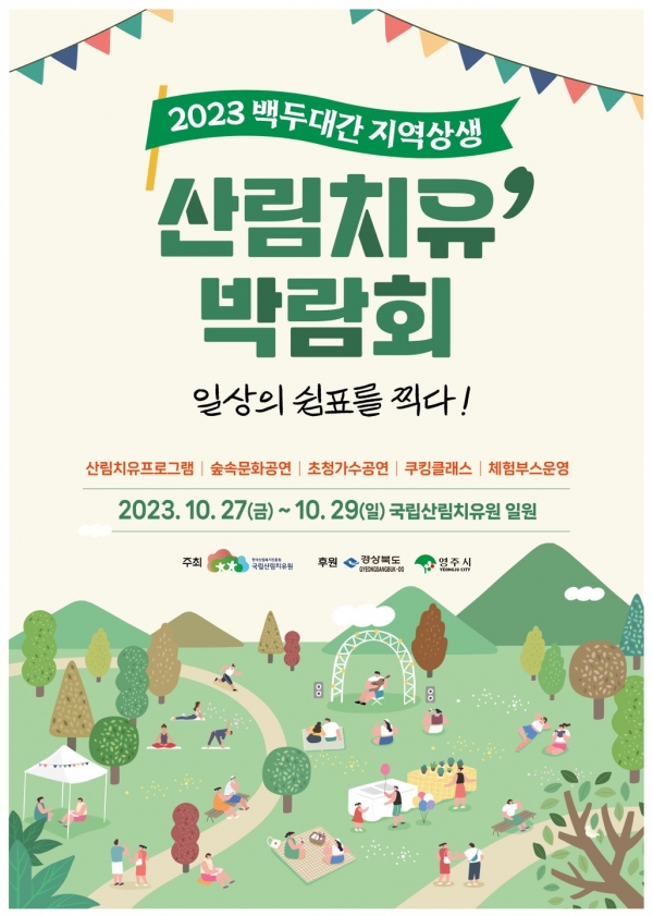 ‘2023 백두대간 지역상생 산림치유 박람회’가 오는 27일부터 29일까지 3일간 영주시 봉현면에 소재한 국립산림치유원 일대에서 개최 된다고 영주시가 25일 밝혔다.