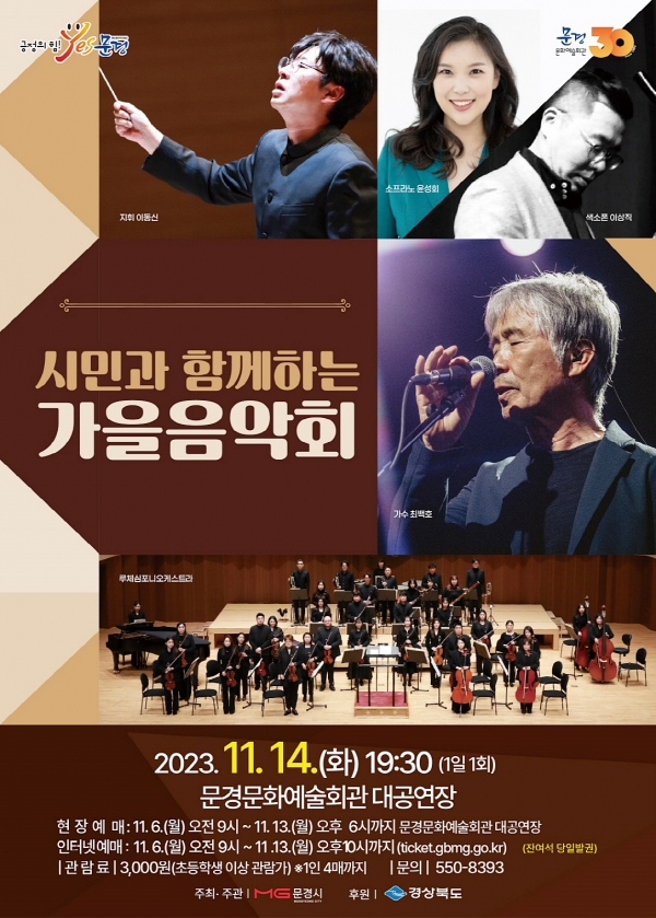 또 가을밤과 어울리는 허스키 한 목소리의 최백호 가수 초청공연을 통해 깊어가는 가을 정취와 낭만을 선사할 것으로 기대된다.