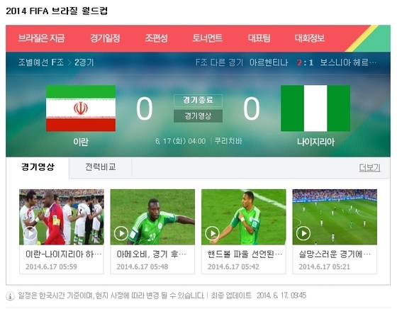 이란과 나이지리아는 17일(이하 한국시간) 브라질 쿠리치바의 바이샤다 경기장에서 열린 F조 조별리그 첫 경기에서 0-0으로 비겼다.